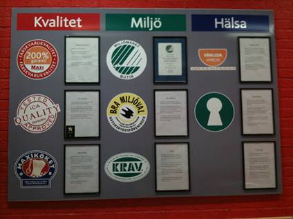 To give you the sense of eco-labels that I’ve been focusing on in Sweden, see the middle column of the photo below. “Miljö” means “environment.”