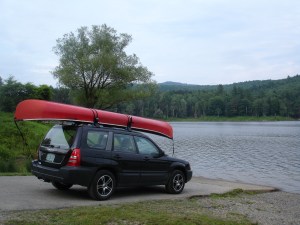 Photo: Our Subaru and canoe on the Wrightsville Reservoir Boat Launch.